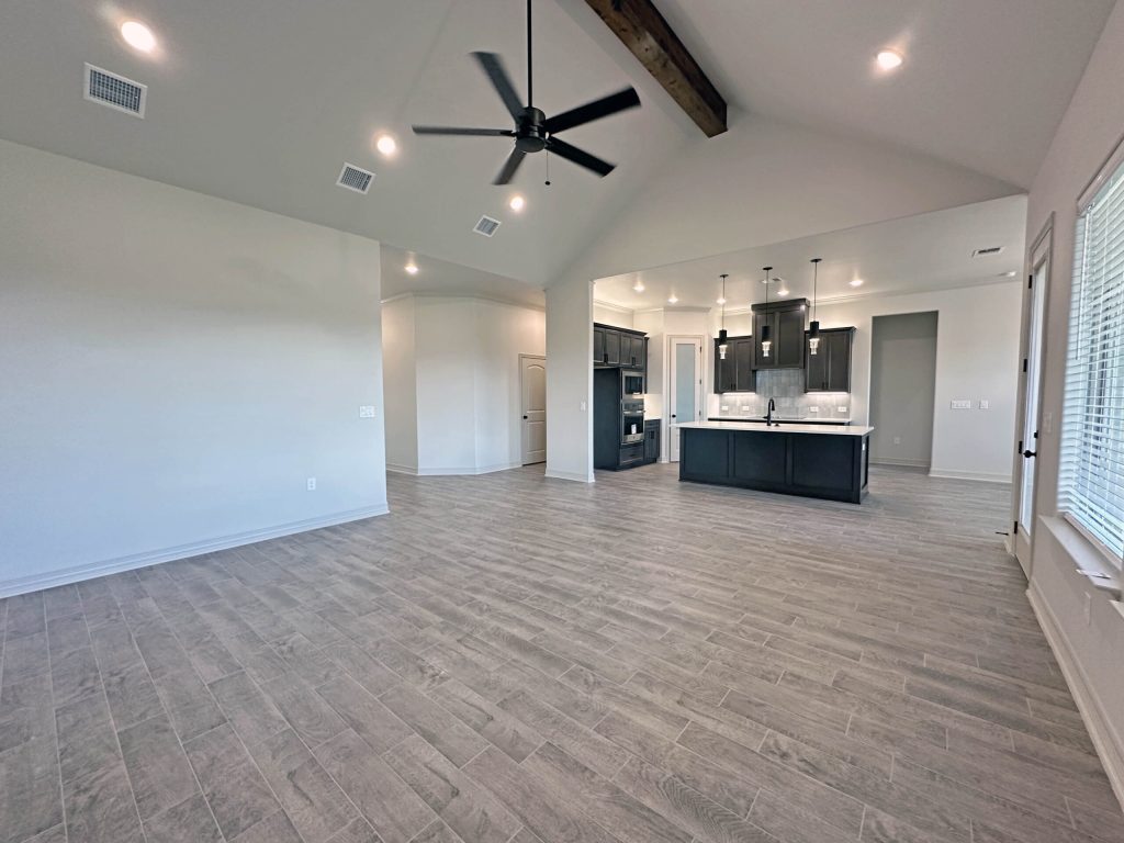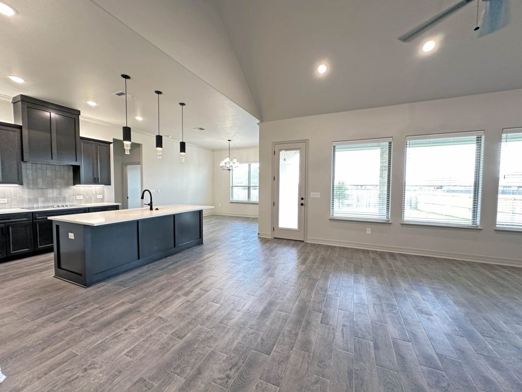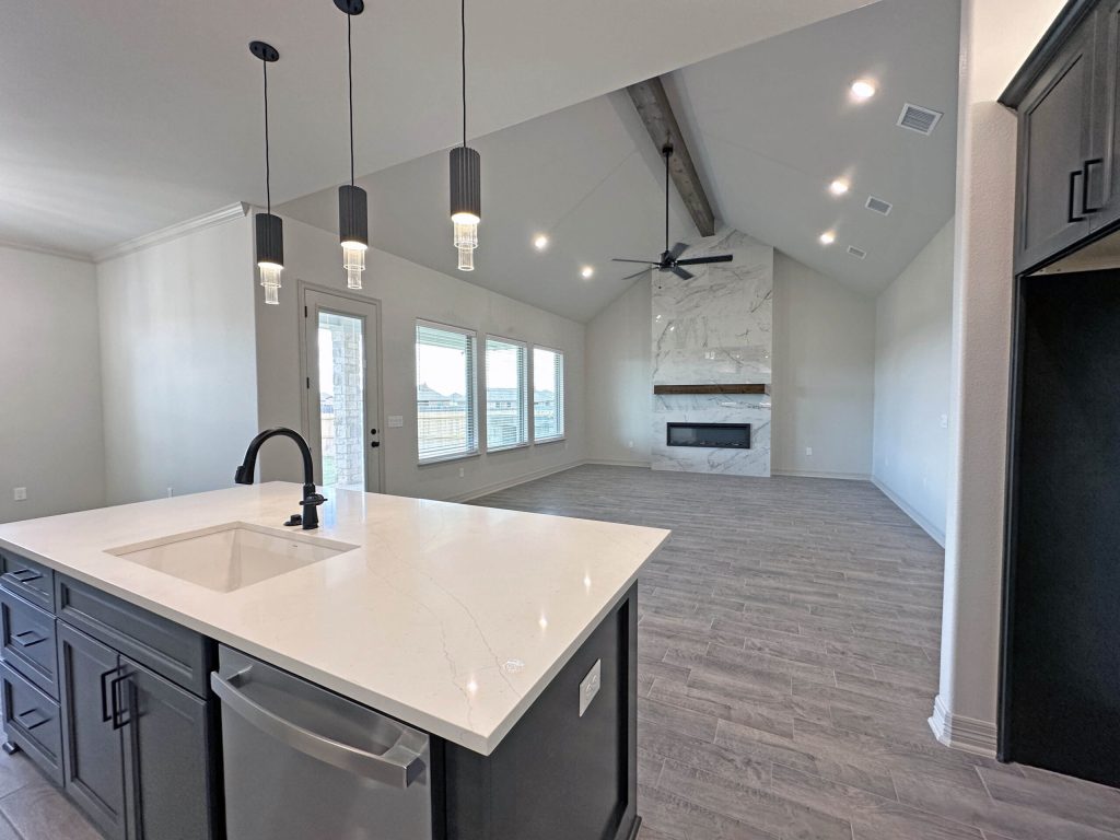 Step into the open-concept family room, where vaulted ceilings and a sleek electric fireplace create a warm and inviting atmosphere—perfect for relaxing or entertaining. The oversized dining area flows seamlessly into the kitchen, which features: