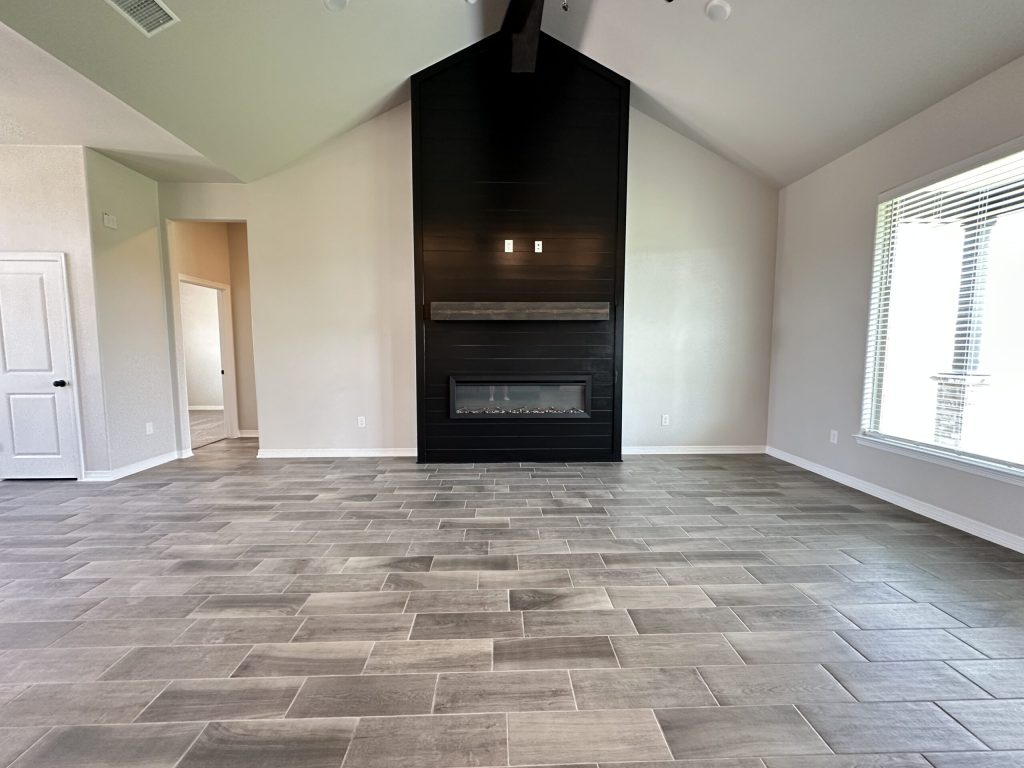 A formal dining room sets the stage for memorable gatherings, while the living room boasts soaring ceilings and a cozy electric fireplace—ideal for year-round comfort.