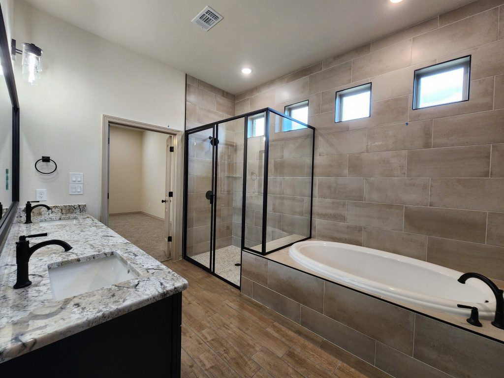 The primary suite is a true retreat, featuring a spa-inspired bathroom with a soaking tub, walk-in shower, dual vanities, and an expansive walk-in closet—no need to compromise on space!