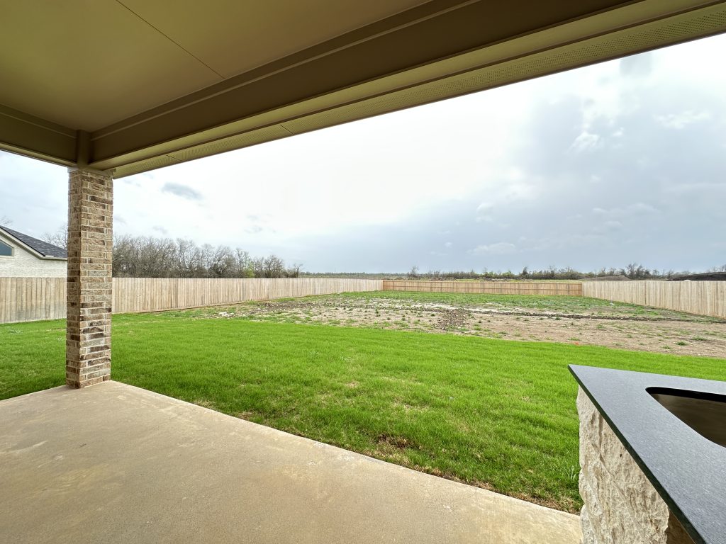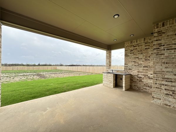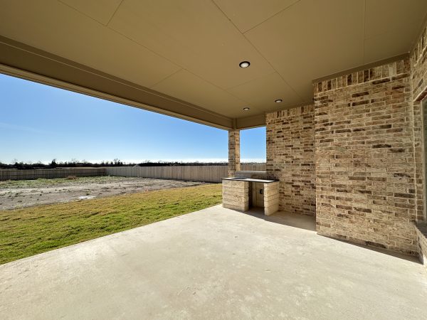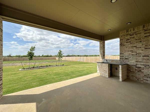 Step outside to your covered patio with a built-in outdoor kitchen, ideal for entertaining or relaxing in your private backyard oasis.